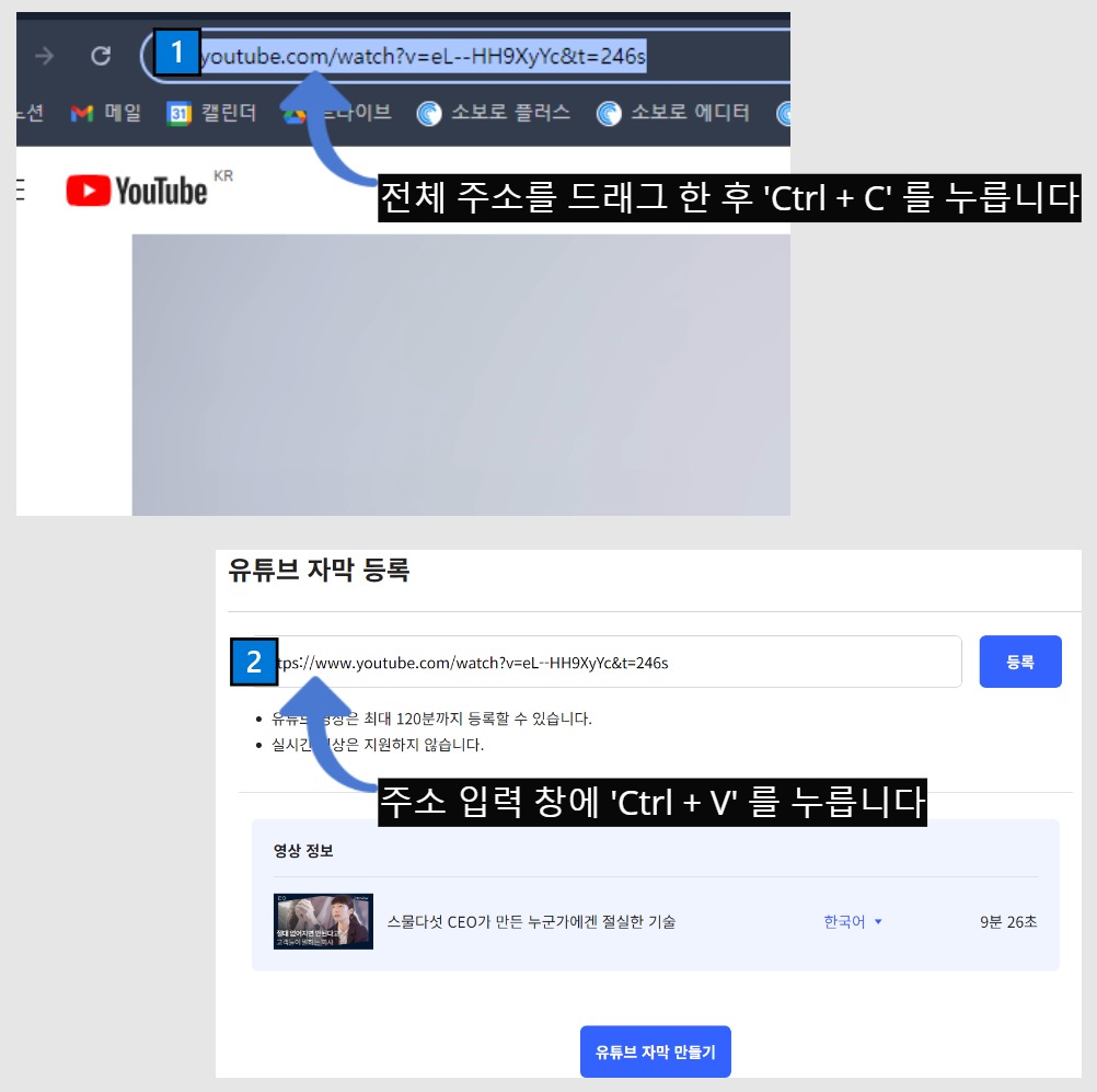 자막이 필요한 유튜브 영상 또는 음성파일에 자막을 받을 수 있어요.